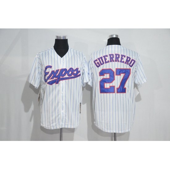 Mitchell And Ness Montreal Expos #27 Vladimir Guerrero White Strip Throwback Stitched Baseball Jersey