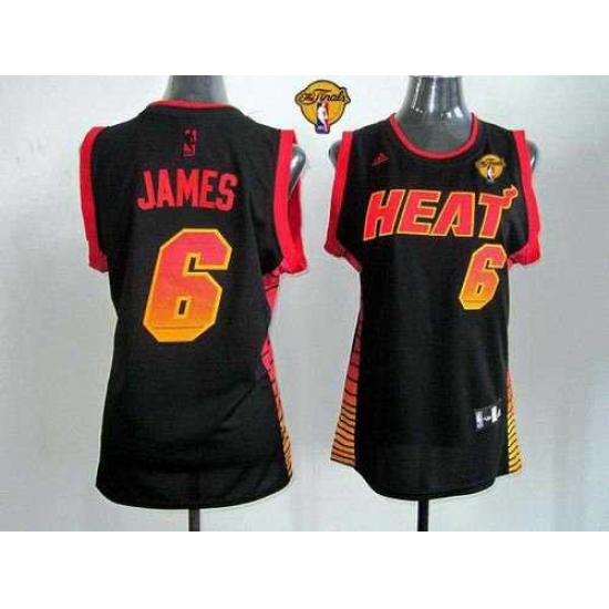 Women NBA Miami Heat #6 LeBron James Black With Finals Patch Vibe Stitched NBA Jersey
