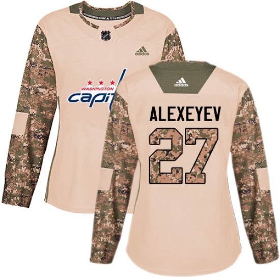 >Women's Adidas Washington Capitals #27 Alexander Alexeyev Authentic Camo Veterans Day Practice NHL Jersey