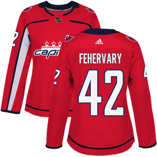 >Women's Adidas Washington Capitals #42 Martin Fehervary Authentic Red Home NHL Jersey