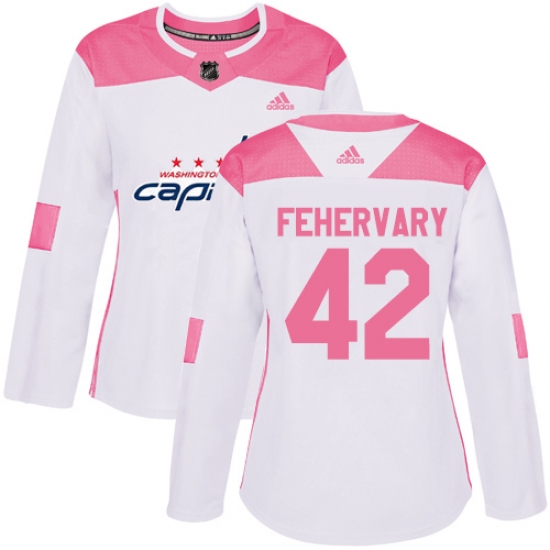 >Women's Adidas Washington Capitals #42 Martin Fehervary Authentic White Pink Fashion NHL Jersey