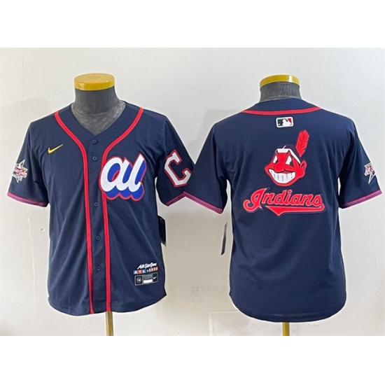 >Women's American League Cleveland Guardians Team Big Logo Navy 2025 All-Star Edition Limited Stitched Baseball Jersey(Run Small)