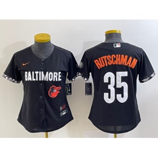 Women's Baltimore Orioles #35 Adley Rutschman Number Black 2023 City Connect Cool Base Stitched Jersey 2