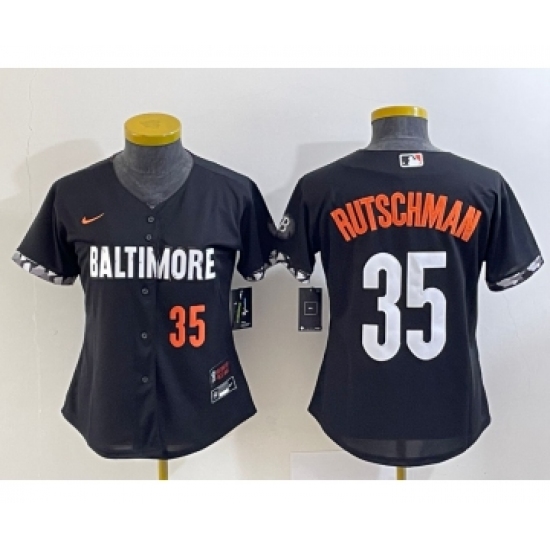 Women's Baltimore Orioles #35 Adley Rutschman Black 2023 City Connect Cool Base Stitched Jersey