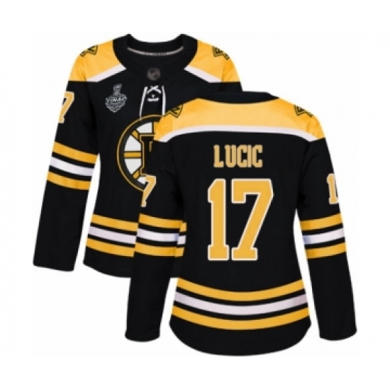 >Women's Boston Bruins #17 Milan Lucic Authentic Black Home 2019 Stanley Cup Final Bound Hockey Jersey