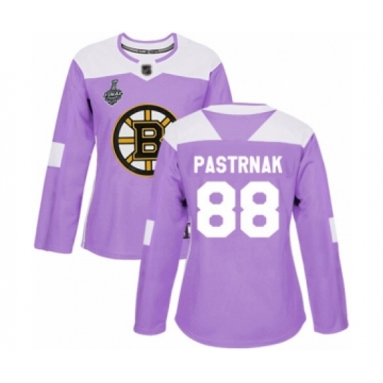 Women's Boston Bruins #88 David Pastrnak Authentic Purple Fights Cancer Practice 2019 Stanley Cup Final Bound Hockey Jersey