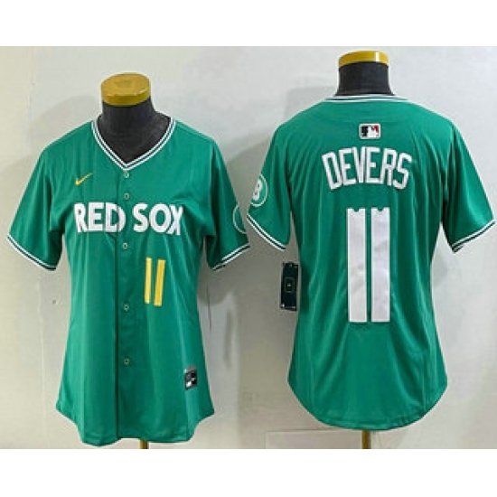 >Women's Boston Red Sox #11 Rafael Devers Green 2025 City Connect Player Name Limited Jersey