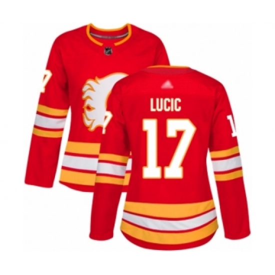 Women's Calgary Flames #17 Milan Lucic Authentic Red Home Hockey Jersey