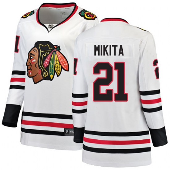 Women's Chicago Blackhawks #21 Stan Mikita Authentic White Away Fanatics Branded Breakaway NHL Jersey