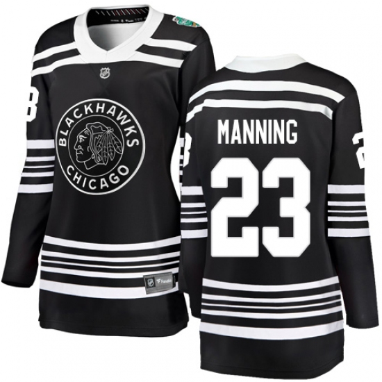 >Women's Chicago Blackhawks #23 Brandon Manning Black 2019 Winter Classic Fanatics Branded Breakaway NHL Jersey