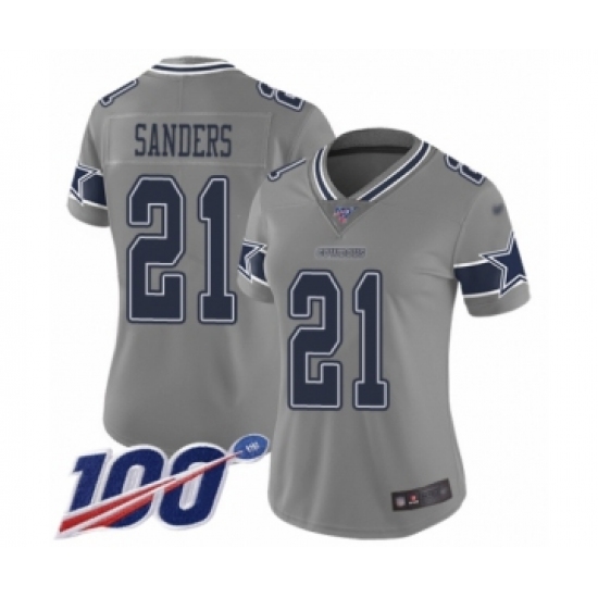 Women's Dallas Cowboys #21 Deion Sanders Limited Gray Inverted Legend 100th Season Football Jersey