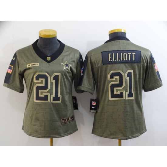 Women's Nike Dallas Cowboys #21 Ezekiel Elliott 2022 Olive Salute To Service Limited Stitched Jersey