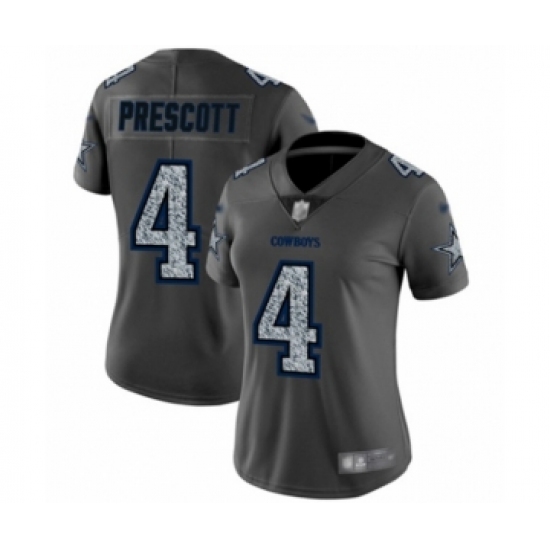 >Women's Dallas Cowboys #4 Dak Prescott Gray Static Fashion Limited Football Jersey