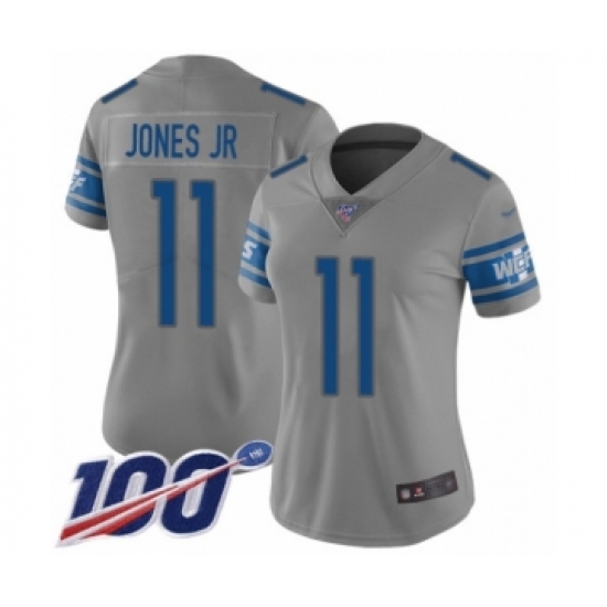 >Women's Detroit Lions #11 Marvin Jones Jr Limited Gray Inverted Legend 100th Season Football Jersey