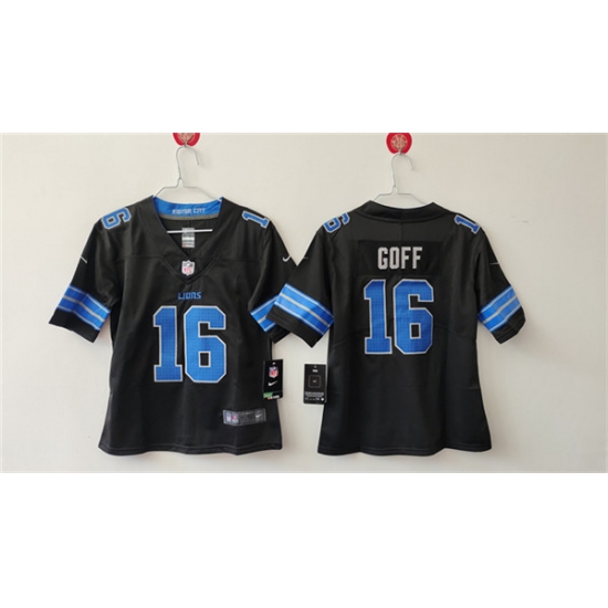 >Women's Detroit Lions #16 Jared Goff Black Vapor Football Stitched Jersey(Run Smaller)