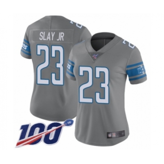 >Women's Detroit Lions #23 Darius Slay Limited Steel Rush Vapor Untouchable 100th Season Football Jersey
