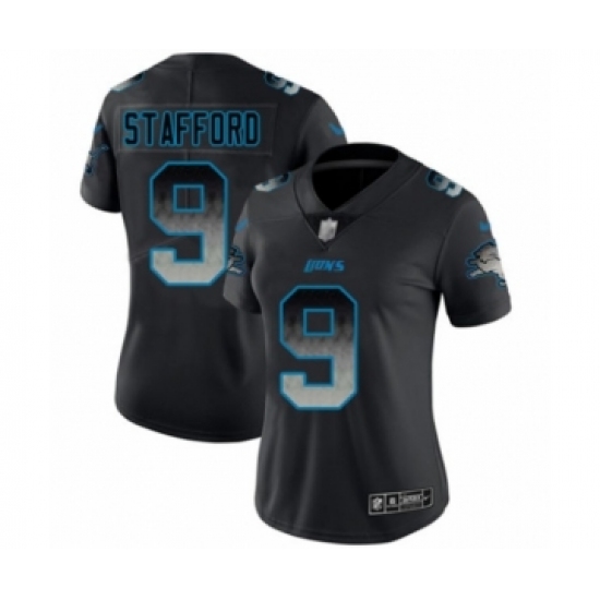 >Women's Detroit Lions #9 Matthew Stafford Limited Black Smoke Fashion Football Jersey
