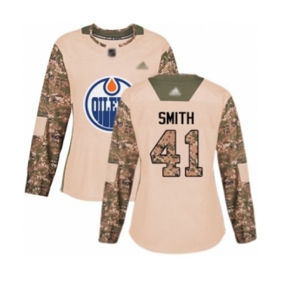 >Women's Edmonton Oilers #41 Mike Smith Authentic Camo Veterans Day Practice Hockey Jersey