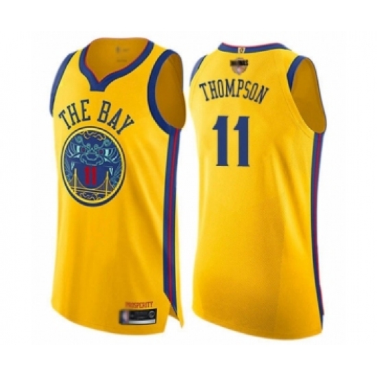 >Women's Golden State Warriors #11 Klay Thompson Swingman Gold 2019 Basketball Finals Bound Basketball Jersey - City Edition