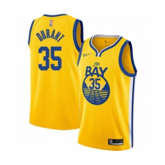 Men's Golden State Warriors #35 Kevin Durant Yellow Swingman 2019 Basketball Finals Bound Jersey - Earned Edition