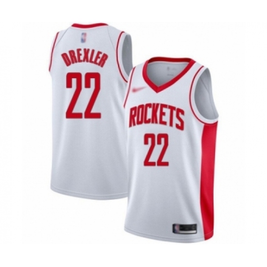 >Women's Houston Rockets #22 Clyde Drexler Swingman White Finished Basketball Jersey - Association Edition