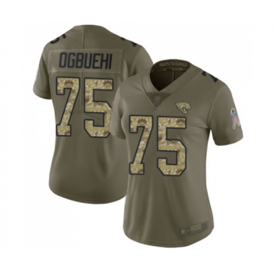 >Women's Jacksonville Jaguars #75 Cedric Ogbuehi Limited Olive Camo 2017 Salute to Service Football Jersey