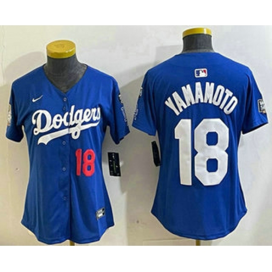 >Women's Los Angeles Dodgers #18 Yoshinobu Yamamoto Number Blue 2024 World Series With Fernando 34 Fashion Limited Stitched Jersey