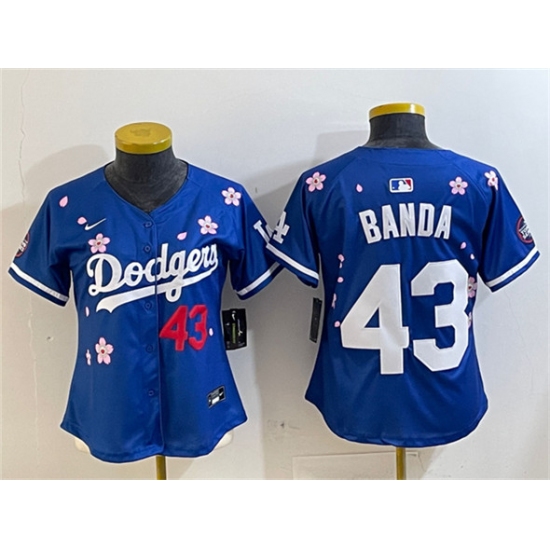 >Women's Los Angeles Dodgers #43 Anthony Banda Royal 2025 Tokyo Series Limited Stitched Baseball Jersey(Run Small)