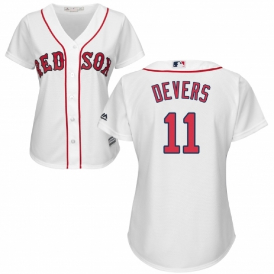 >Women's Majestic Boston Red Sox #11 Rafael Devers Replica White Home MLB Jersey