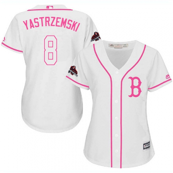 Women's Majestic Boston Red Sox #8 Carl Yastrzemski Authentic White Fashion 2018 World Series Champions MLB Jersey