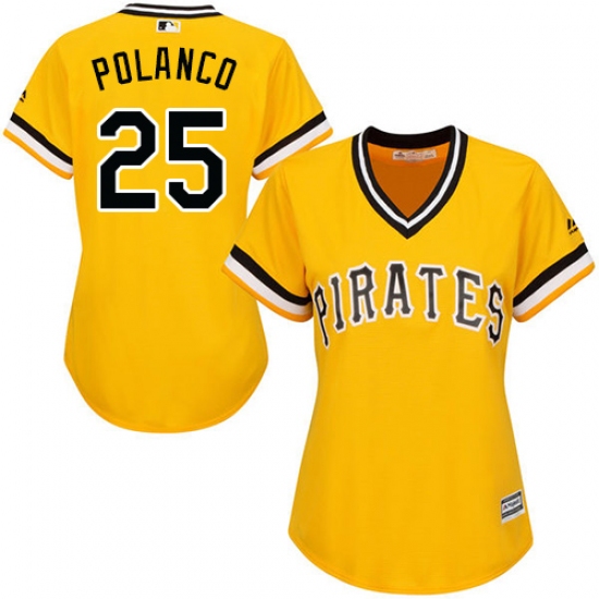 Women's Majestic Pittsburgh Pirates #25 Gregory Polanco Replica Gold Alternate Cool Base MLB Jersey