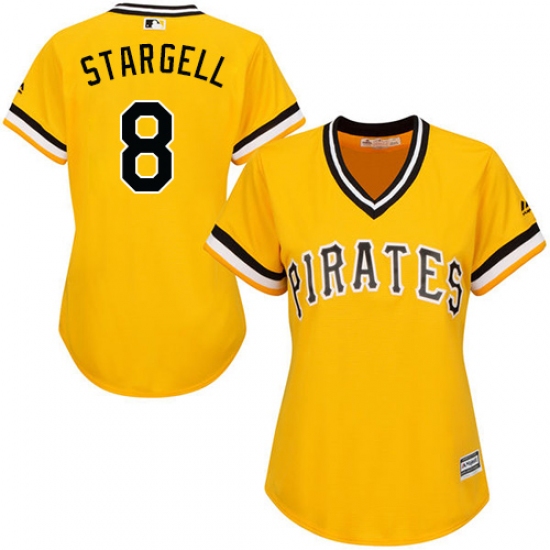 Home>MLB>Pittsburgh Pirates>Willie Stargell>Women's Majestic Pittsburgh Pirates #8 Willie Stargell Authentic Gold Alternate Cool Base MLB Jersey