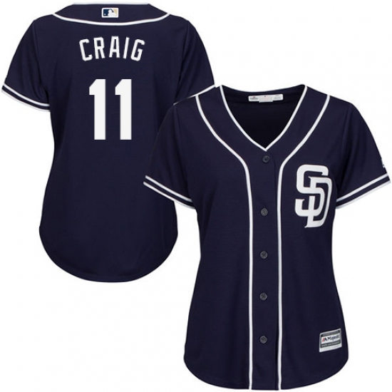 Home>MLB>San Diego Padres>Allen Craig>Women's Majestic San Diego Padres #11 Allen Craig Authentic Navy Blue Alternate 1 Cool Base MLB Jersey