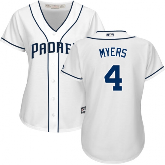 Home>MLB>San Diego Padres>Wil Myers>Women's Majestic San Diego Padres #4 Wil Myers Authentic White Home Cool Base MLB Jersey