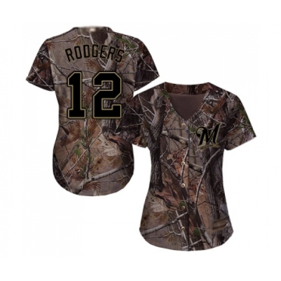 >Women's Milwaukee Brewers #12 Aaron Rodgers Authentic Camo Realtree Collection Flex Base Baseball Jersey