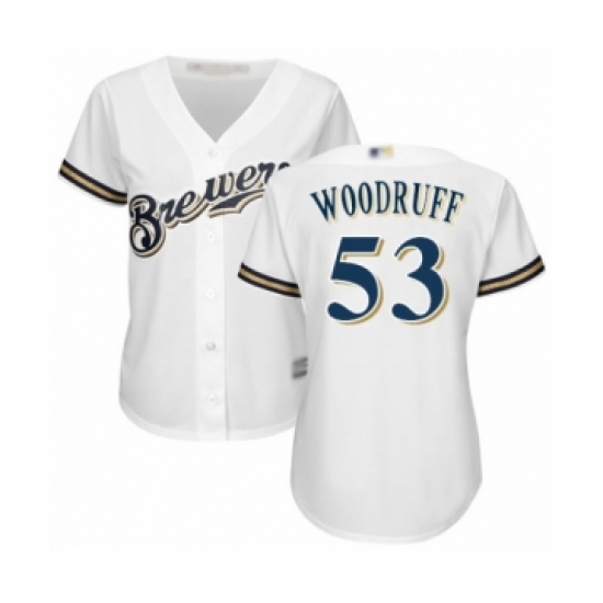 >Women's Milwaukee Brewers #53 Brandon Woodruff Authentic White Alternate Cool Base Baseball Jersey