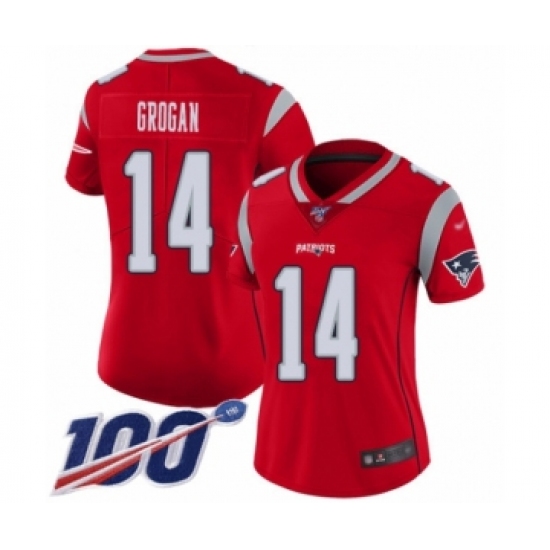 Women's New England Patriots #14 Steve Grogan Limited Red Inverted Legend 100th Season Football Jersey