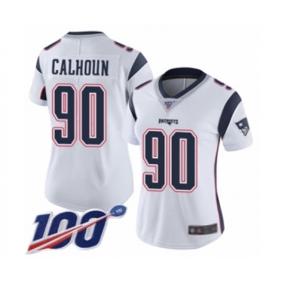 Women's New England Patriots #90 Shilique Calhoun White Vapor Untouchable Limited Player 100th Season Football Jersey