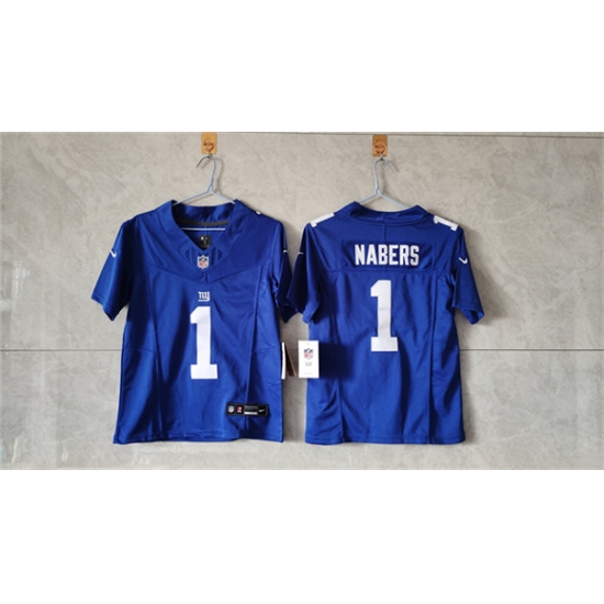 >Women's New York Giants #1 Malik Nabers Blue F.U.S.E. Vapor Limited Stitched Jersey(Run Small)