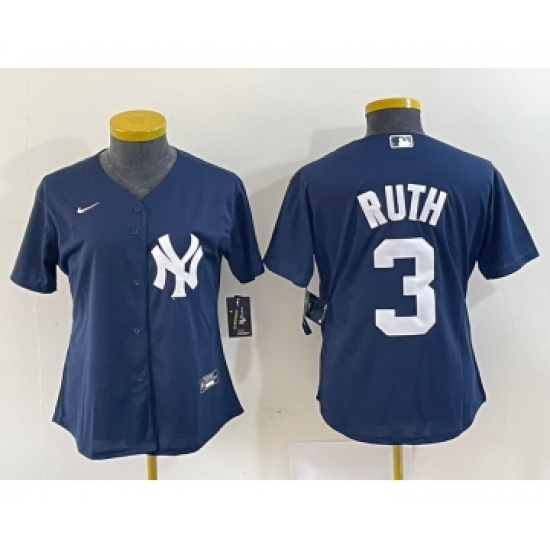 Women's New York Yankees #3 Babe Ruth Navy Blue Stitched Nike Cool Base Jersey