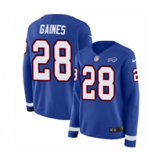 >Women's Nike Buffalo Bills #73 Dion Dawkins Limited Royal Blue Therma Long Sleeve NFL Jersey