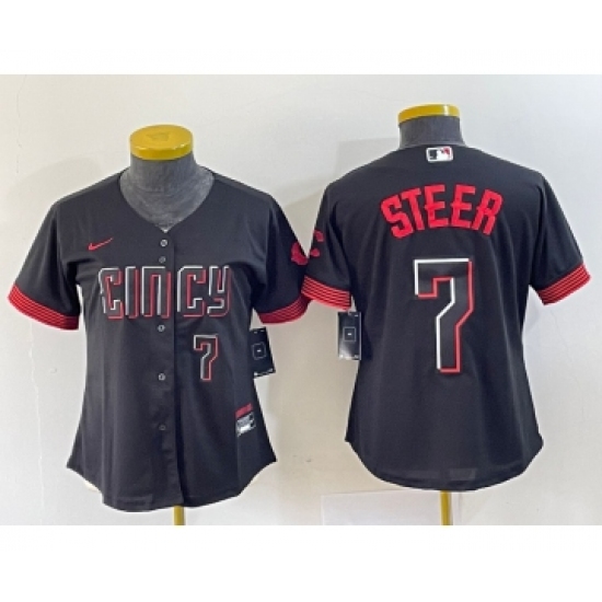 Women's Nike Cincinnati Reds #7 Spencer Steer Numer Black 2023 City Connect Cool Base Stitched Baseball Jersey1