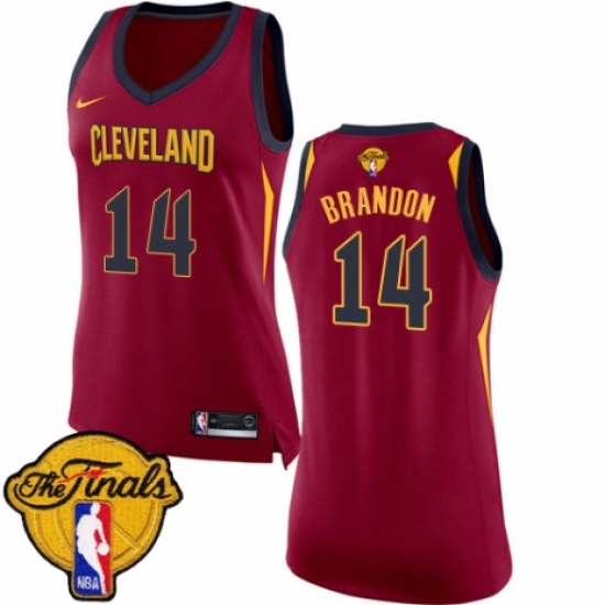 >Women's Nike Cleveland Cavaliers #14 Terrell Brandon Authentic Maroon 2018 NBA Finals Bound NBA Jersey - Icon Edition
