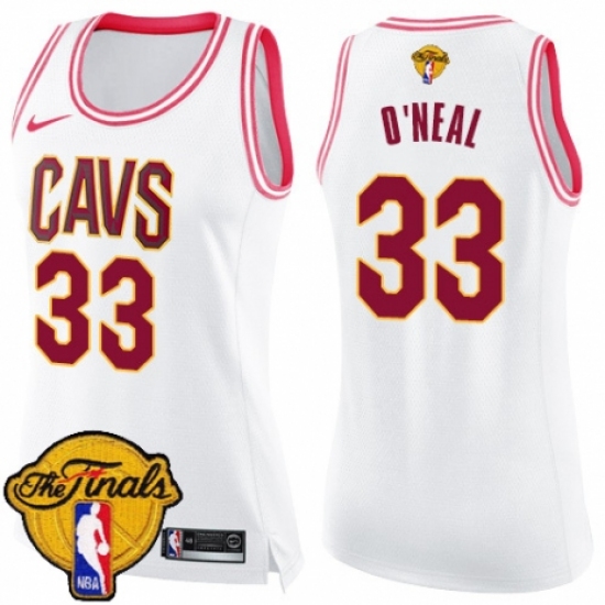 >Women's Nike Cleveland Cavaliers #33 Shaquille O'Neal Swingman White/Pink Fashion 2018 NBA Finals Bound NBA Jersey