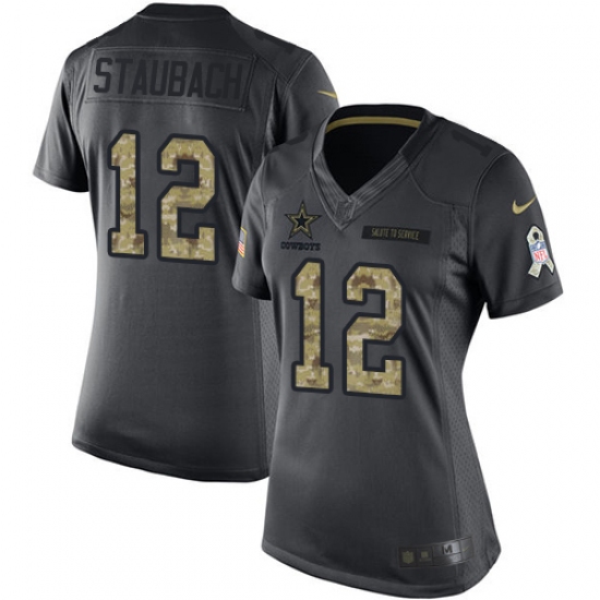 Home>NFL>Dallas Cowboys>Roger Staubach>Women's Nike Dallas Cowboys #12 Roger Staubach Limited Black 2016 Salute to Service NFL Jersey