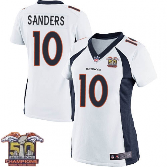 Women's Nike Denver Broncos #10 Emmanuel Sanders Elite White Super Bowl 50 Champions NFL Jersey