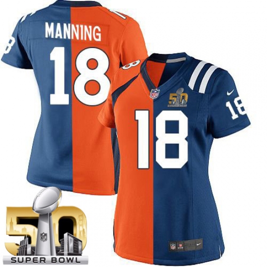 Women's Nike Denver Broncos #18 Peyton Manning Elite Navy Blue/White Split Fashion Super Bowl 50 Bound NFL Jersey