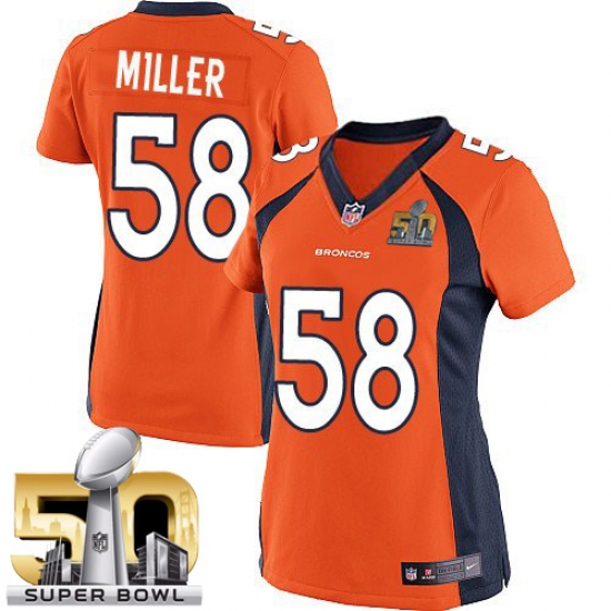 Women's Nike Denver Broncos #58 Von Miller Limited Orange Team Color Super Bowl 50 Bound NFL Jersey