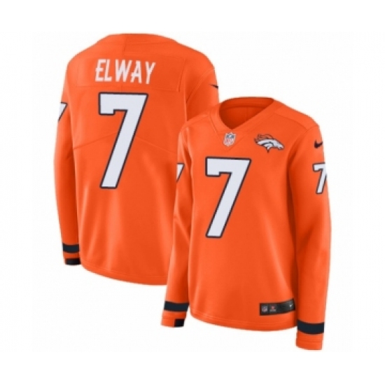 >Women's Nike Denver Broncos #7 John Elway Limited Orange Therma Long Sleeve NFL Jersey
