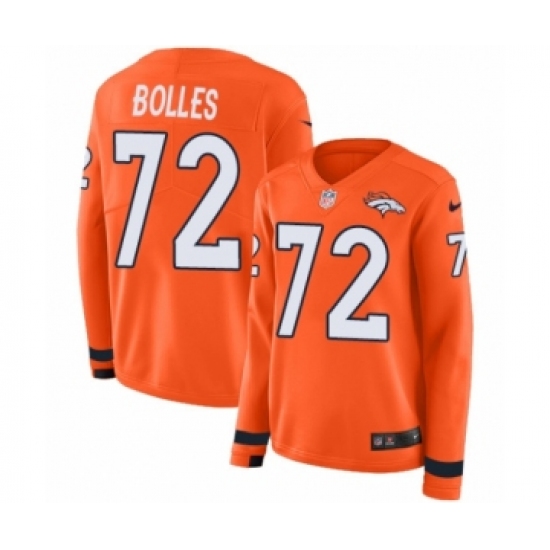 Women's Nike Denver Broncos #72 Garett Bolles Limited Orange Therma Long Sleeve NFL Jersey
